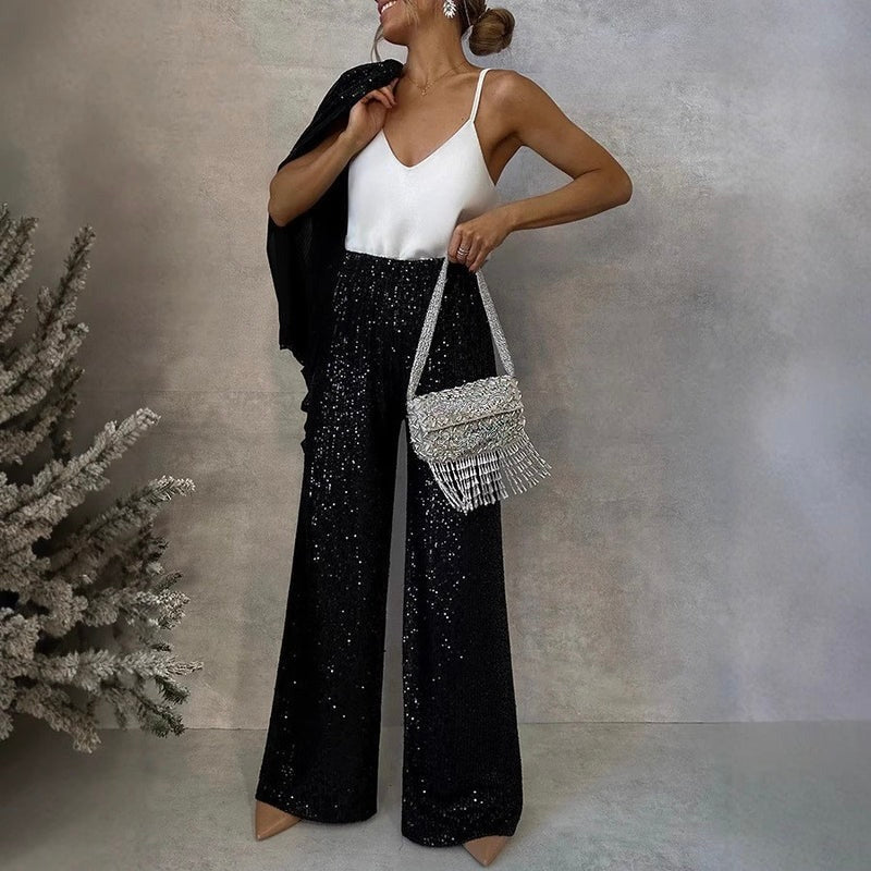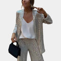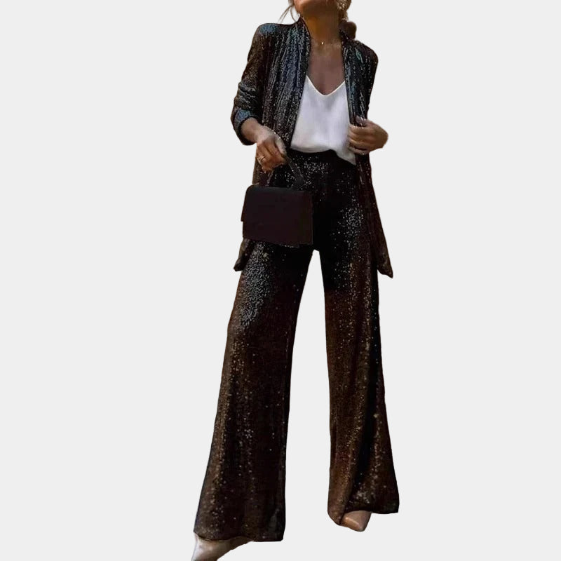 Tweedelige Glitter Set met Jasje en Wijde Broek voor Dames