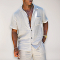 Deze tweedelige set voor heren is ontworpen voor dagelijks gebruik bij warm weer. De set bestaat uit een poloshirt met korte mouwen en een bijpassende short. Het shirt is voorzien van een klassieke kraag en een korte knoopsluiting aan de voorzijde. De short beschikt over een elastische tailleband, die zorgt voor een flexibele en comfortabele pasvorm. Beide kledingstukken zijn vervaardigd van een ademende stof die de luchtstroom bevordert, wat bijdraagt aan het draagcomfort tijdens zomerse omstandigheden.