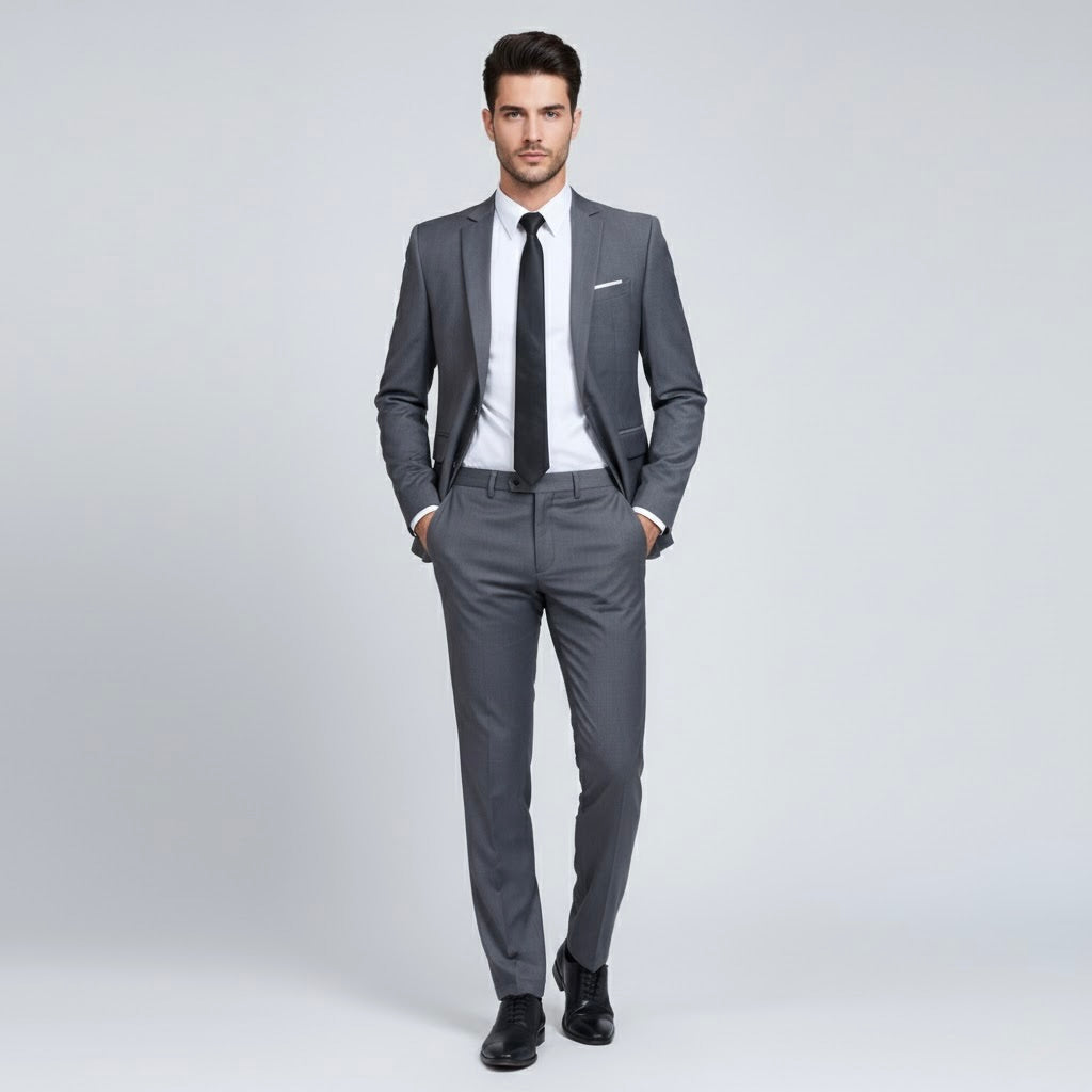 Ben je op zoek naar een pak dat perfect is voor op kantoor? Dit zakelijke pak voor heren heeft een klassieke pasvorm en is gemaakt van een comfortabel materiaal. Het is een veelzijdig kledingstuk dat geschikt is voor zowel formele als informele bijeenkomsten.