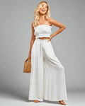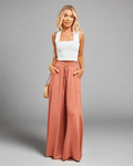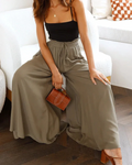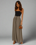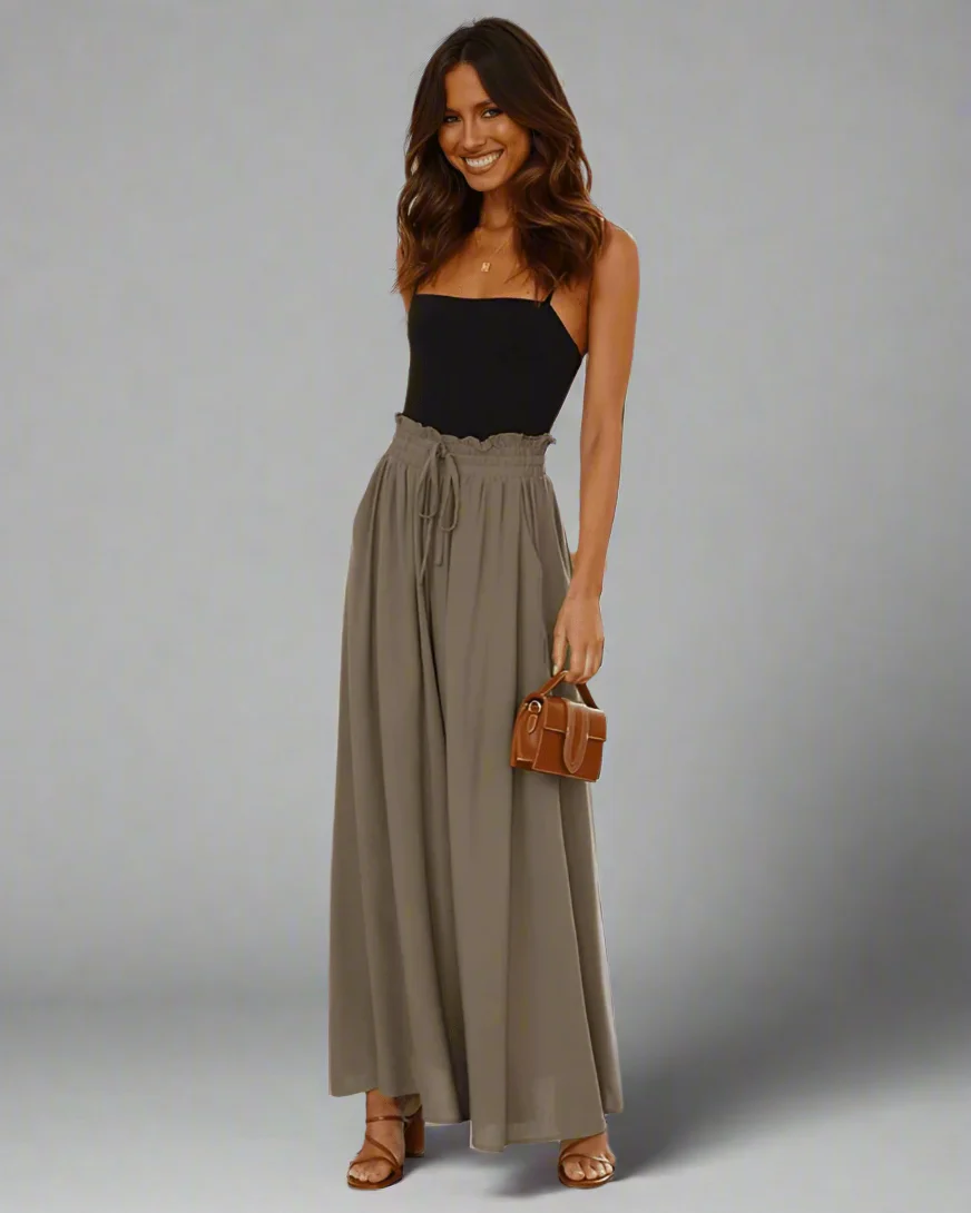 Deze wijdvallende zomerbroek met hoge taille voor dames is vervaardigd uit een vloeiende stof die een elegante uitstraling combineert met een prettige draagervaring voor warme dagen. De elastische paperbag tailleband met een verstelbaar trekkoord zorgt voor een flatterend silhouet en een aangename pasvorm. De broek is voorzien van diepe, functionele steekzakken en heeft extra wijde pijpen die zorgen voor een luchtige en zwierige beweging bij elke stap. Dankzij de minimalistische afwerking en de vloeiende textuur creΓ«er je moeiteloos een veelzijdige verschijning die perfect is voor strandwandelingen, vakantie-uitjes of een ontspannen middag in de stad.